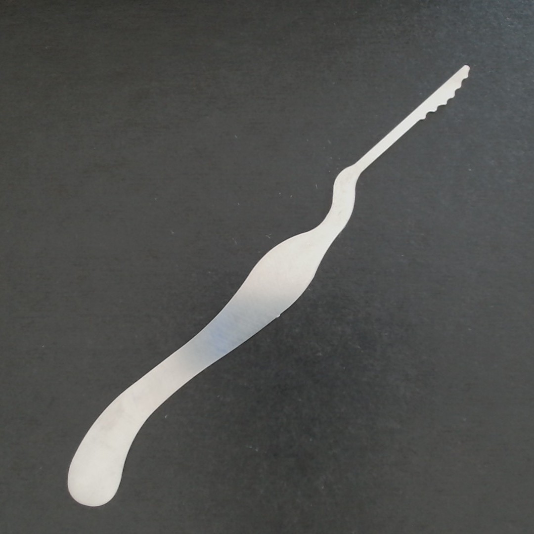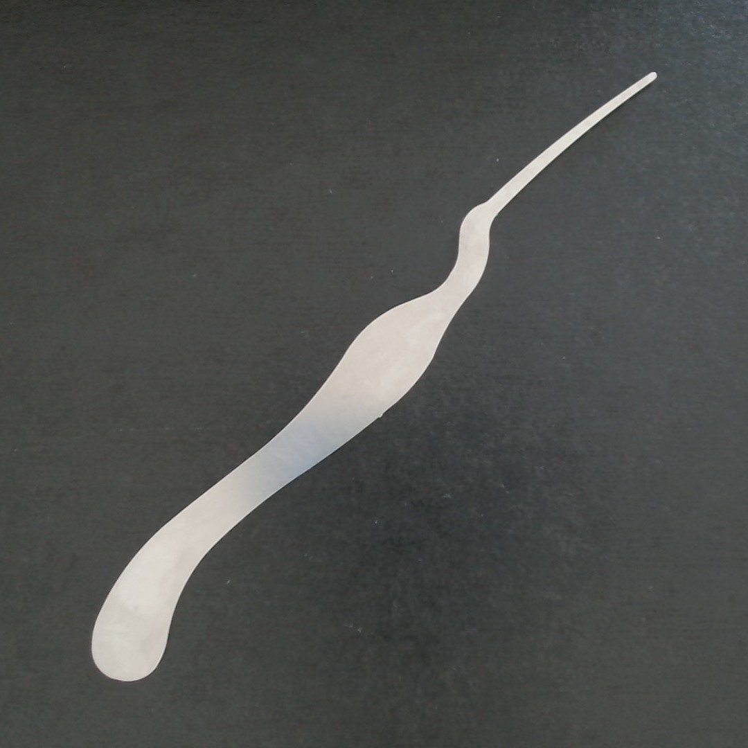 - Considérant que la génération précédente des outils “Corbeaux”s était trop souple pour une utilisation parfaite, nous avons augmenté l’épaisseur de la lame de 0.1mm, en remplaçant l’acier utilisé par un nouvel acier plus rigide et résistant, ce qui nous permet aujourd’hui d’obtenir des picks qui restent extrêmement mince (0.5mm) mais dont la rigidité et la solidité s’avère parfaite pour une utilisation intensive.