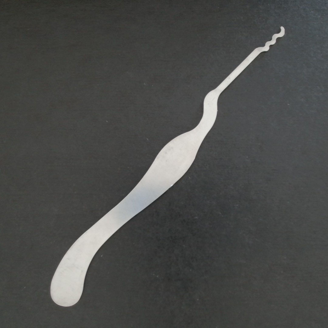 Le palpeur R03 est un outil de raclage de type “serpent”, comme le “five mountain” cet outil permet de pratiquer la technique du raclage consistant à abaisser de manière simultanée plusieurs goupilles du cylindre afin de les positionner sur la ligne de césure, sans avoir à palper chaque goupille à l’intérieur du cylindre.